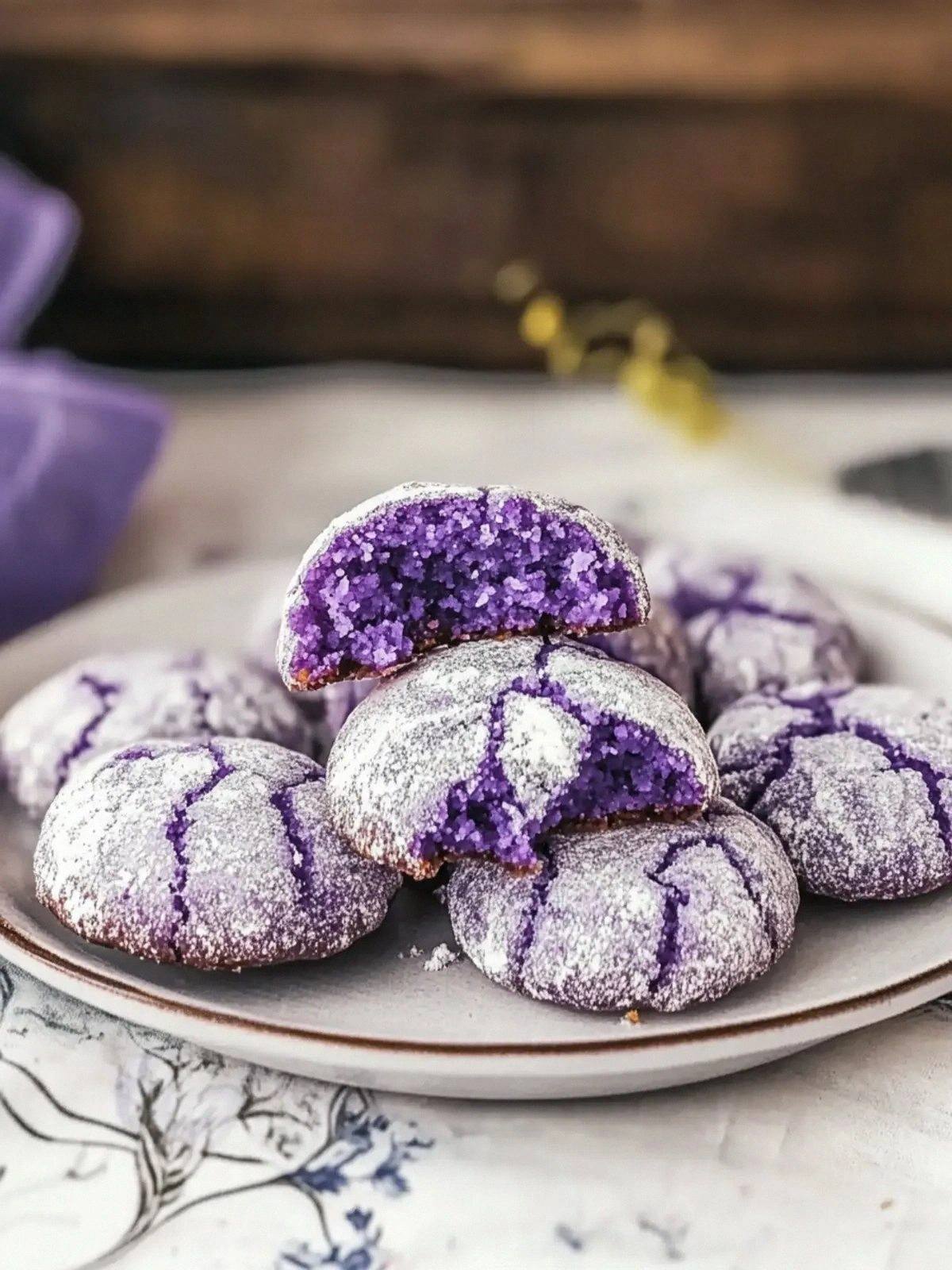 The flour—whether gluten‑free or regular—provides the structure that allows the cookie to hold its shape during baking. The baking powder gives a slight lift, preventing the cookies from being too flat. A pinch of sea salt balances the sweetness and brings out the ube’s natural flavor. Finally, the granulated sugar for rolling creates that signature crinkle pattern when the dough is rolled in sugar before baking, and the powdered sugar dusted on top gives a delicate finish and a sweet crunch.