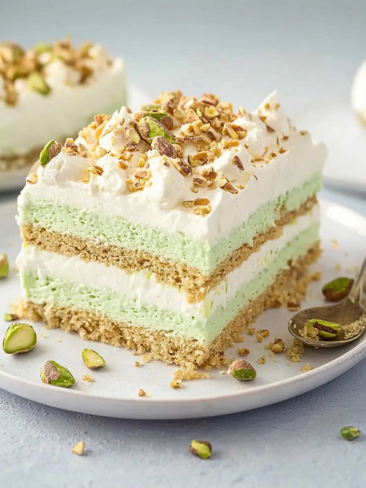 The first time I tried this version, the kitchen filled with the nutty aroma of pistachios mingling with the creamy scent of instant pudding. My eyes widened as the mixture thickened into a silky, mousse‑like texture, and the sound of the whisk beating in the bowl sounded like a gentle lullaby. When I finally sliced into the finished cake, the layers of graham cracker crumbs and whipped topping gave a satisfying crunch that contrasted with the velvety center, creating a sensory experience that felt both familiar and brand‑new. I was honest—half of the batch vanished before anyone else could even taste it—and the reaction was instant: “I dare you to taste this and not go back for seconds.”