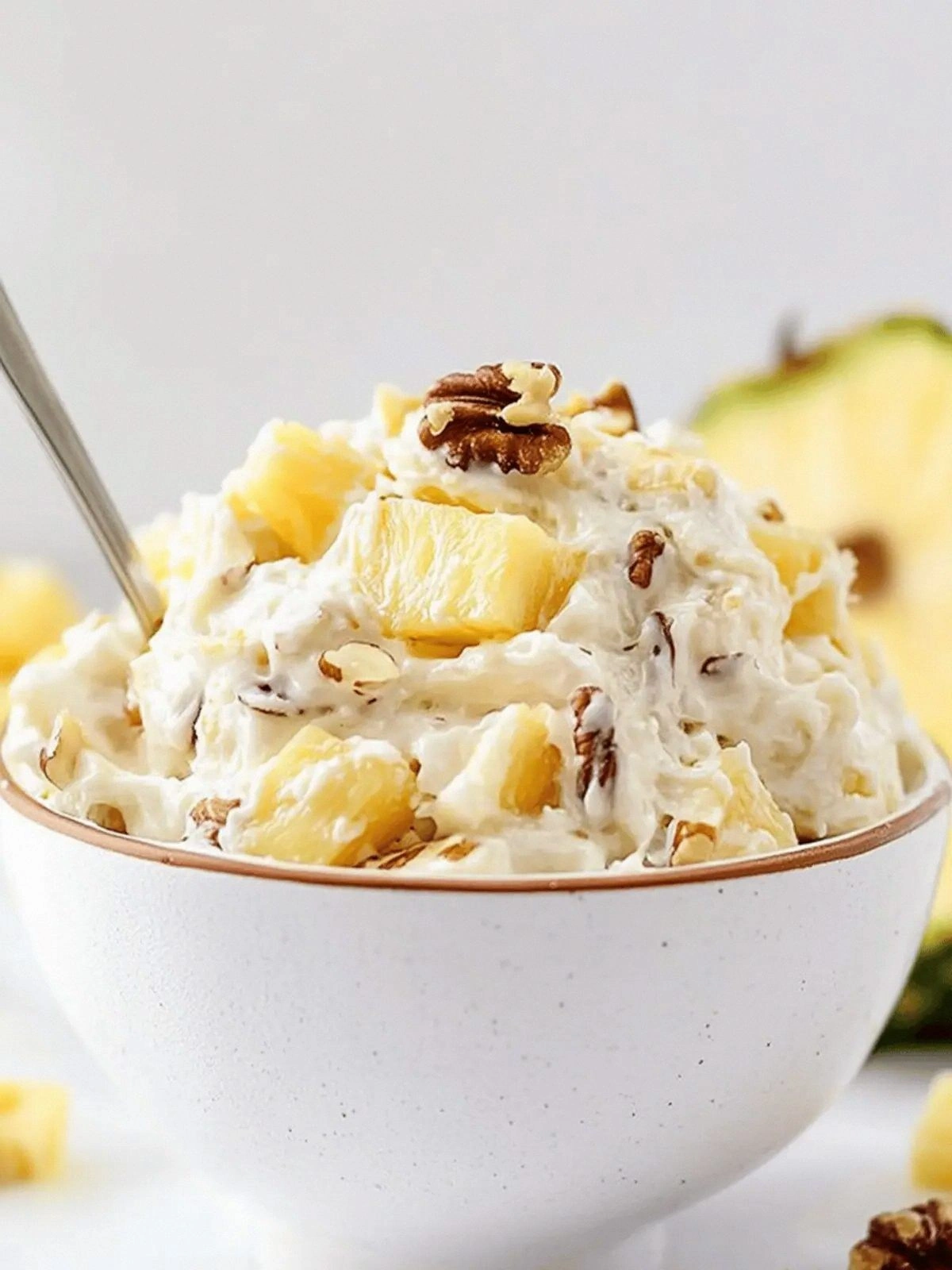 Picture yourself pulling this out of the fridge, the whole kitchen smelling incredible, the sunlight catching on the glossy surface of the pineapple cubes. You’ll hear the gentle hiss of the refrigerator door closing, a reminder that this is a chilled treat, not a warm one. The texture will feel like a creamy custard, but with a surprising crunch from the walnuts that shatters like thin ice when you bite. That sizzle when it hits the pan? Absolute perfection. And now, ready for the game‑changer? Let me walk you through every single step — by the end, you’ll wonder how you ever made it any other way.