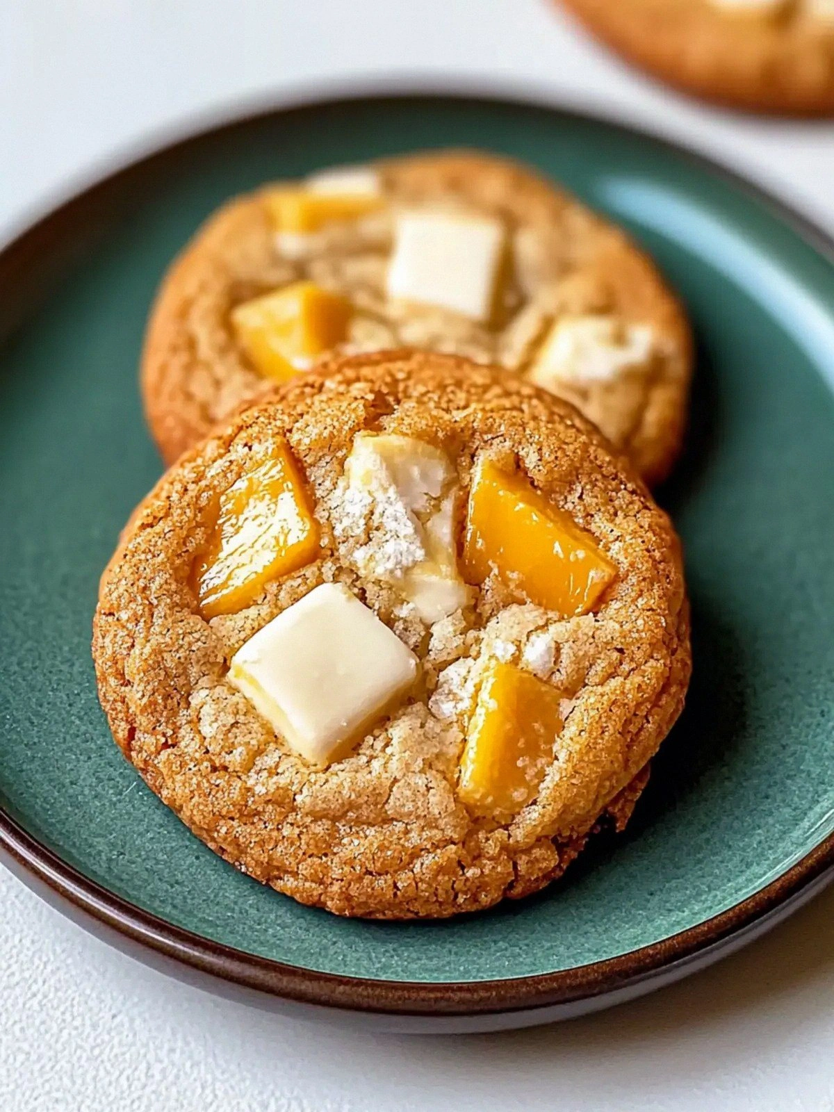 White chocolate chips provide a silky, creamy finish that melts into the dough, adding a subtle sweetness that balances the mango’s tartness. Crushed meringues act as a crunchy garnish that breaks up the soft texture, giving each bite a delightful contrast. The combination of these two ingredients creates a multi‑sensory experience—soft, chewy, crunchy, and sweet—all in one bite. If you prefer a darker chocolate, swap the white chocolate for dark chocolate chips, but keep the meringues to maintain the crunch.