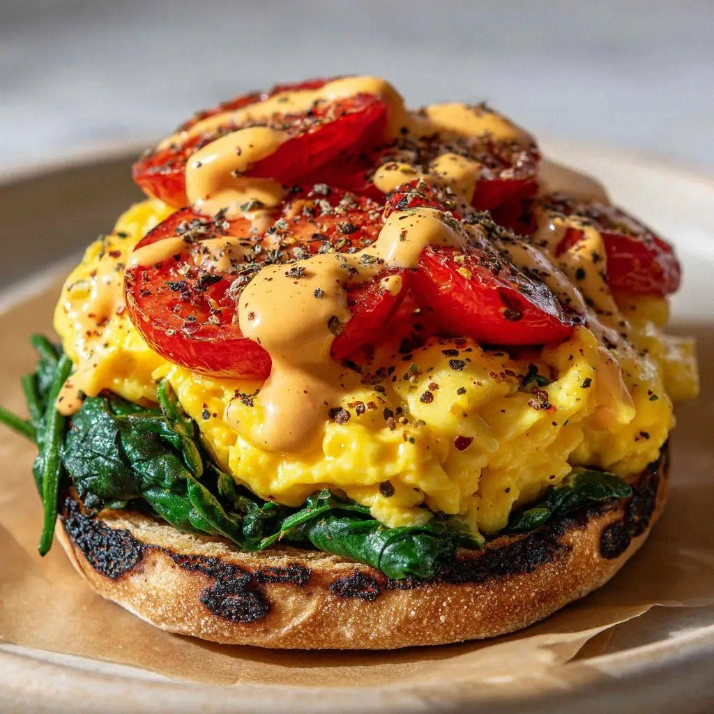 - Texture Harmony: The muffins provide a buttery crunch, while the eggs remain silky and the cheese melts into a gooey ribbon. The spinach adds a subtle bite that balances the softness, and the tomato’s juiciness cuts through the richness. This contrast keeps the sandwich exciting from the first bite to the last.